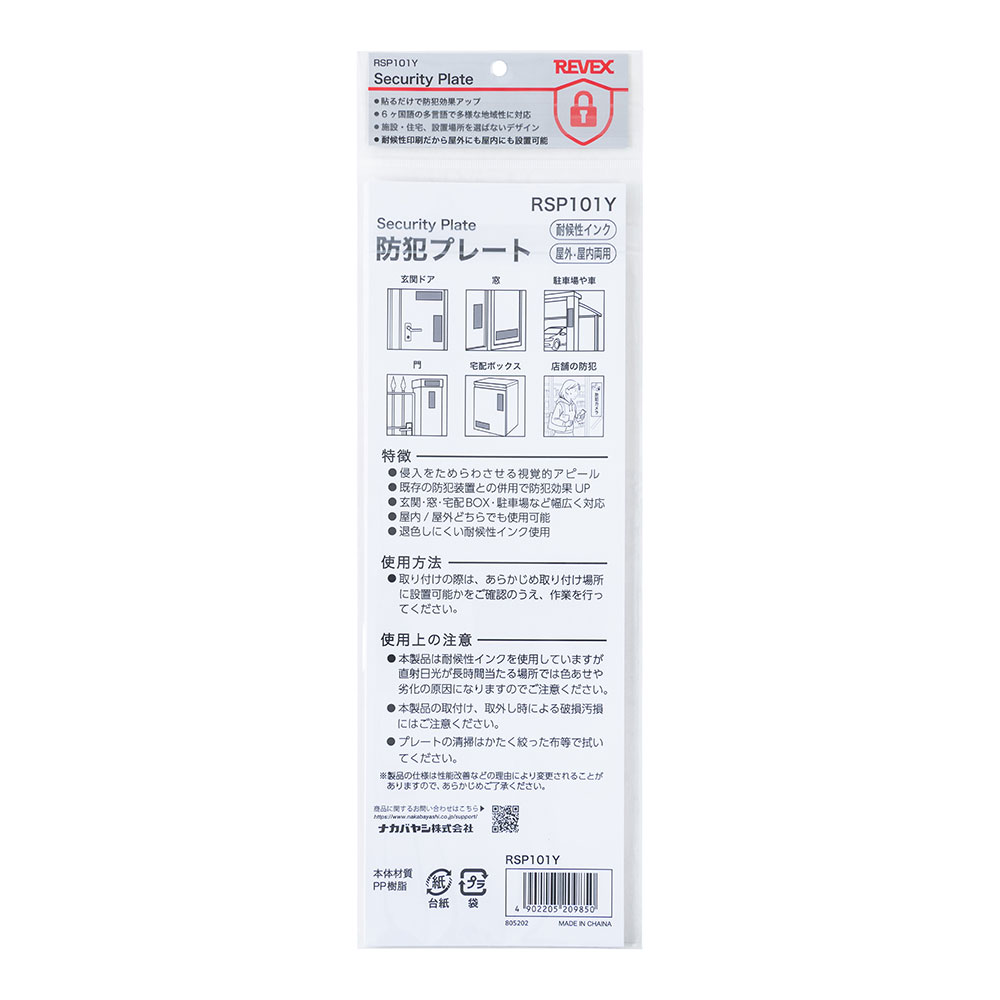 防犯プレート RSP101Y
