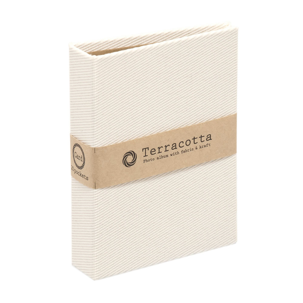 【テラコッタ・teracotta】とは“焼いた土”という意味を持ち“ぬくもり・親しみやすさ”をテーマに素材感のある布地表紙とクラフト台紙を使用した雑貨スタイルのアルバムです。パーソナル・オフィス・店舗など幅広くお使いいただけるようシンプルなデザインに欧風カラーで仕上げました。
