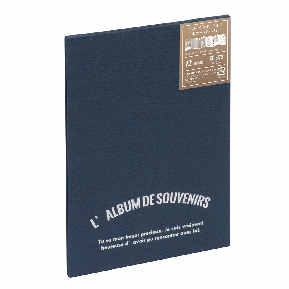 ポストカードサイズまで収納可能なので、旅先で購入した絵葉書や写真(L判)、チケットの半券、押し花などをいれて自分だけの思い出のアルバムに。また、12枚収納なので、子供の写真を一ヶ月につき1枚を入れれば3年を通した成長アルバムにもなります。ロゴの箔押しがきらりと輝き、プチギフトにもおすすめです。