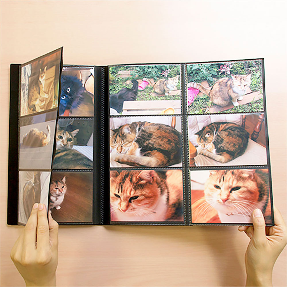 見開きで写真が12枚入る6面アルバムに収納に便利な折りたたみタイプが登場!台紙は写真が映える黒台紙を採用。インテリアになじむナチュラルカラーの布表紙でケースはしっかりとしたクラフト貼仕様です。