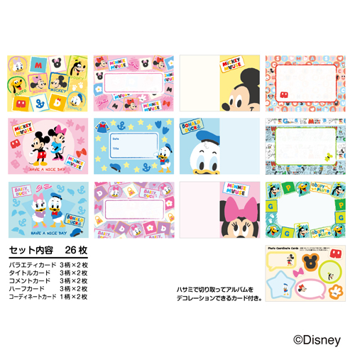 | デコレーションカード | 1 柄×2 枚 切り取ってアルバムのデコレーションに使えるカード 。 |
