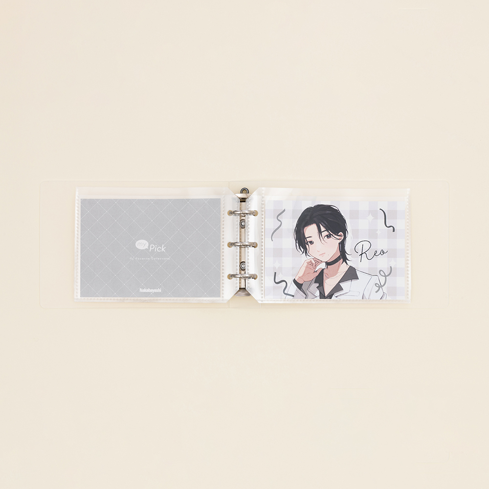 お気に入りの写真やブロマイドを持ち運ぶのに便利なポケットサイズのバインダーアルバムです。内容物が透けて自分好みにカスタマイズができるクリア表紙を採用しました。キーホルダーが付けられるストラップホール付き。