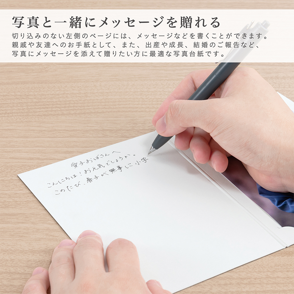 写真1枚とメッセージを贈るのにちょうどいい二つ折りの写真台紙です。