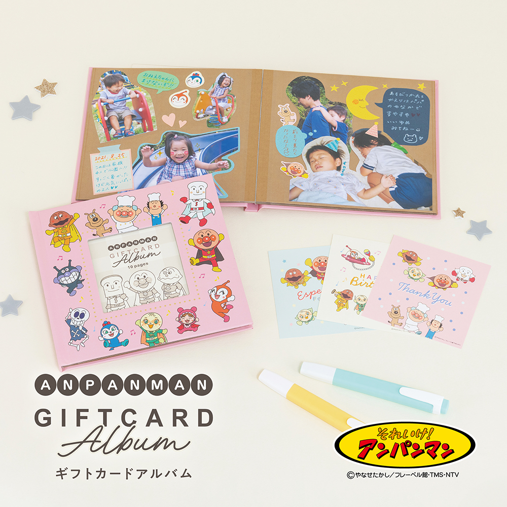 - 贈るシーンに合わせて選べるギフトカード3枚が付属したアンパンマン柄のミニアルバム