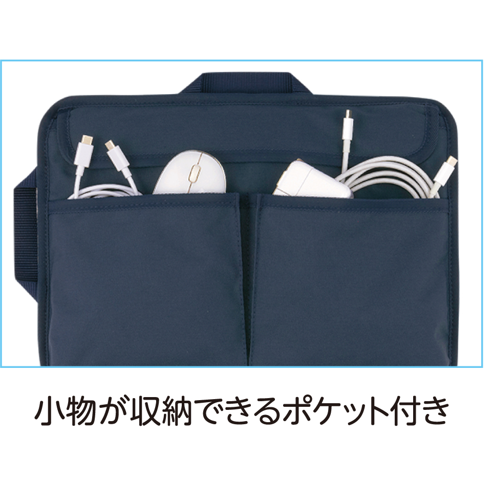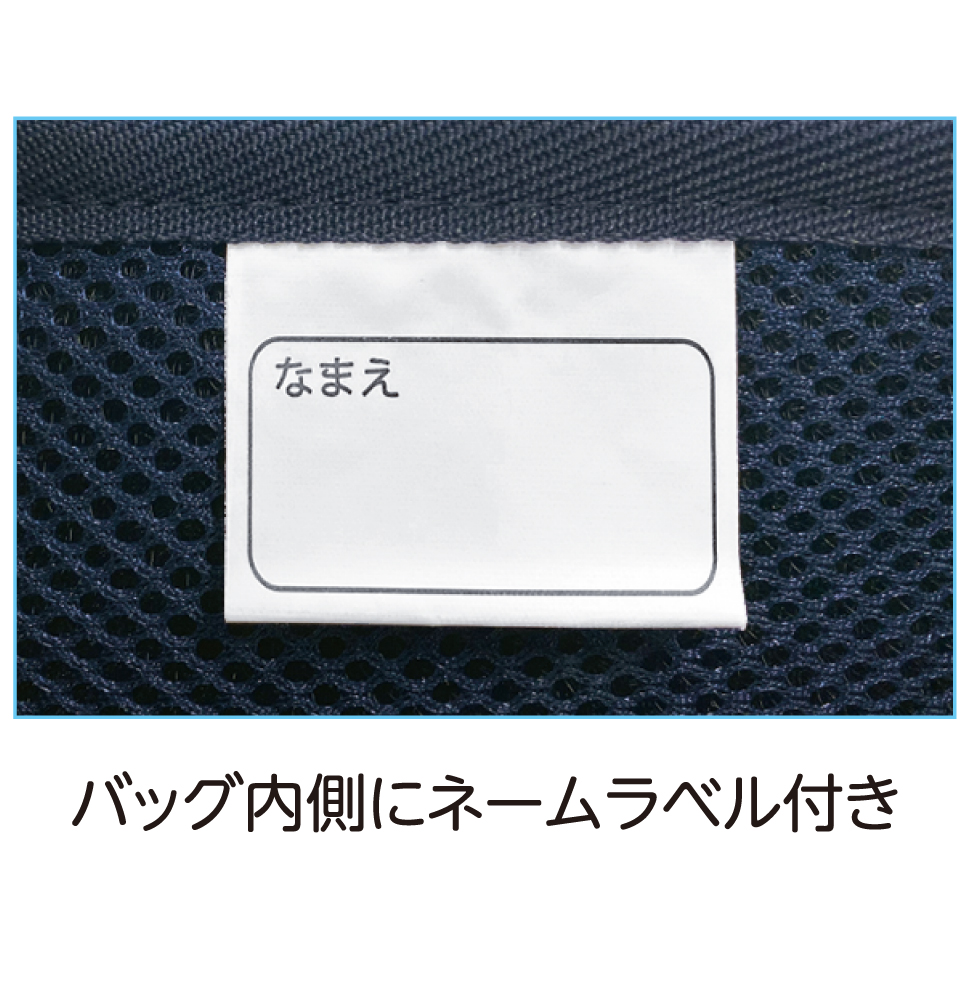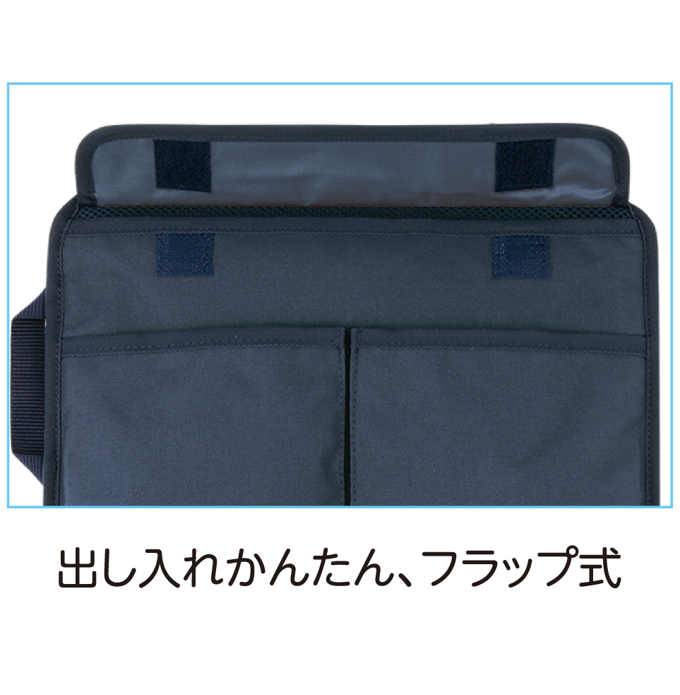 小物収納用のポケット、本体収納部は出し入れ簡単なフラップ式、名前が書けるネームラベルなど、ICT環境の整備が進む昨今の学習環境(GIGAスクール構想)に最適なアイテムです。