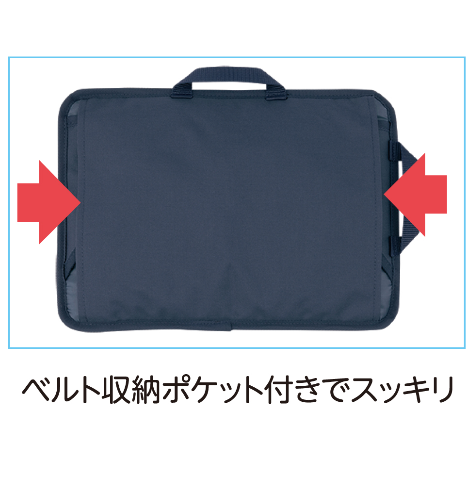 - ベルト収納ポケットにベルトをしまうことでランドセルに入れるインナーバッグとしても使える