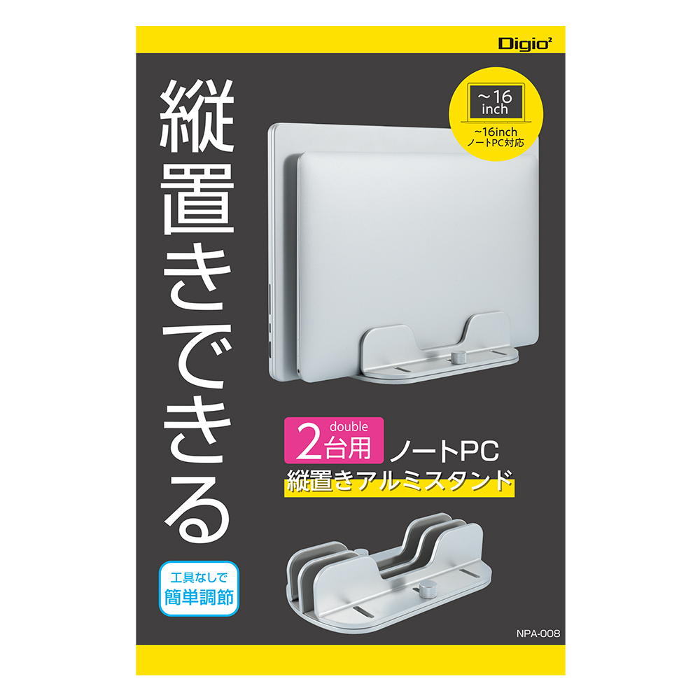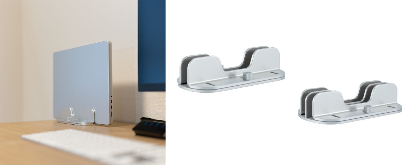 「ノートPC縦置きアルミスタンド シングル/ダブル」は、16インチ以下のノートPCを縦置きすることができるアルミ製のPCスタンドです。
