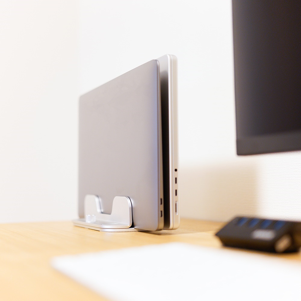 デスク周りをすっきりさせるノートPC縦置きスタンド