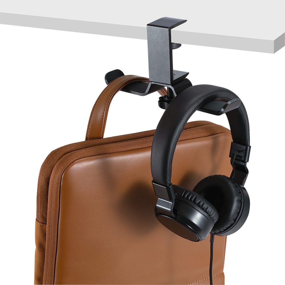 ヘッドホンやバッグを2つ同時に置けるダブルフック設計