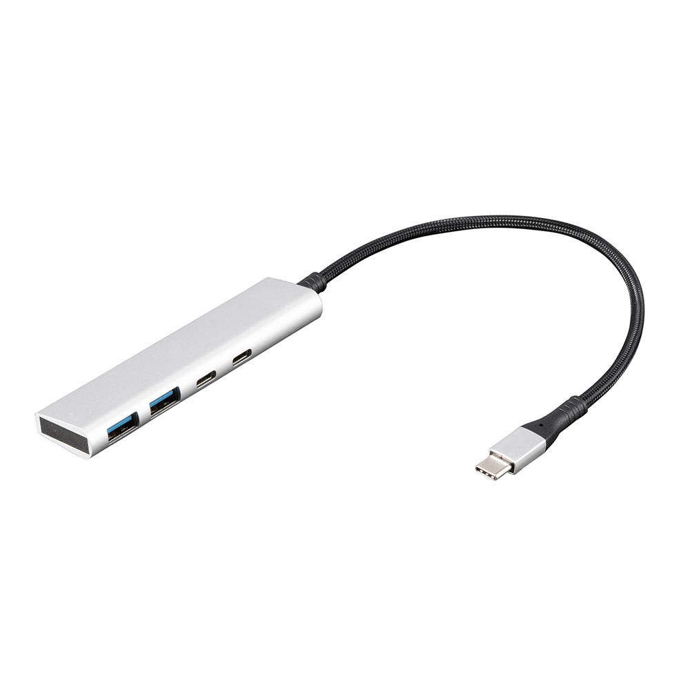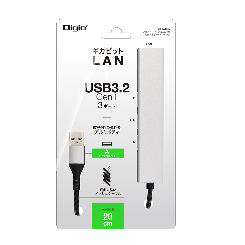 LANアダプタ付USB3.2Gen1Type-A 3ポートアルミハブ/シルバー
