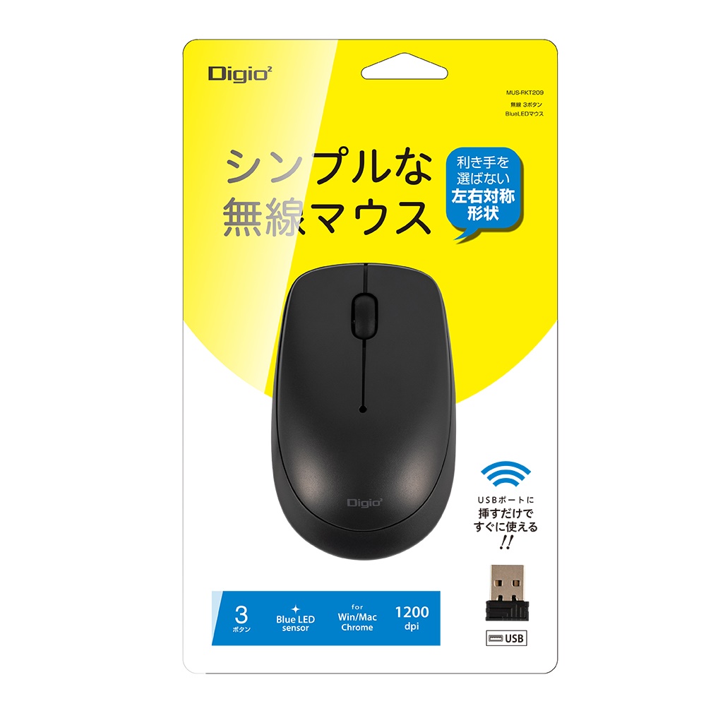 無線3ボタンマウス【MUS-RKT209】ブラック
