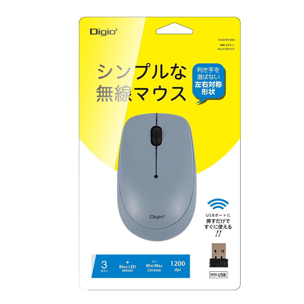 無線3ボタンマウス【MUS-RKT209】ブルー