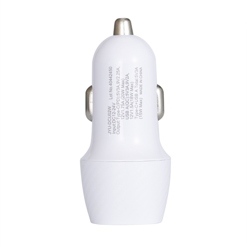 20W PD充電対応 Type-C1ポート+USB A1ポートカーチャージャー【JYU-DCU02】ホワイト
