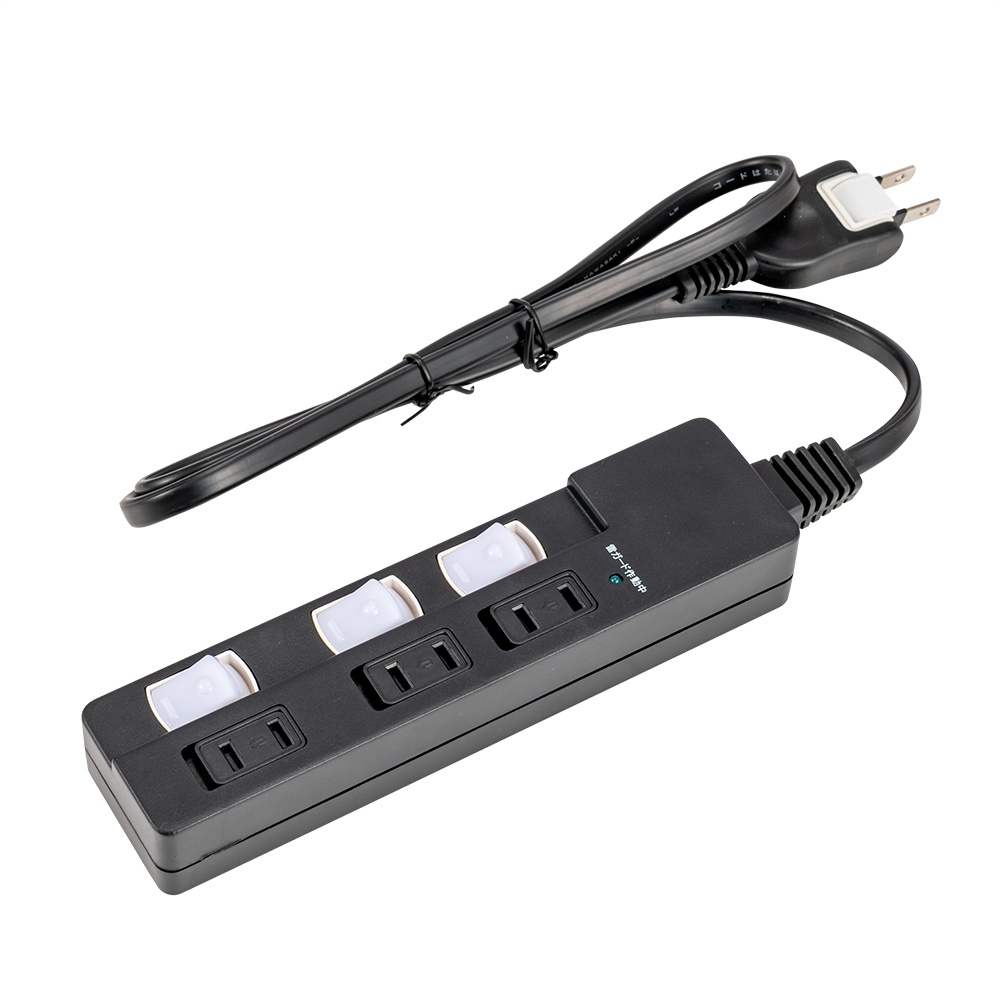安全機能搭載スイッチ付OAタップ/3個口/1m/ブラック