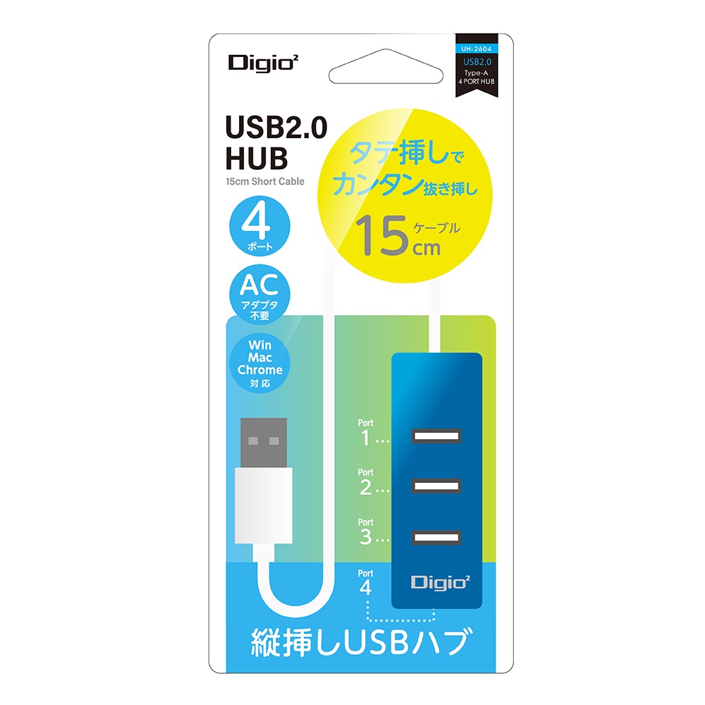 ケーブル一体型4ポートUSBハブ。コンパクトなショートケーブル15cm。