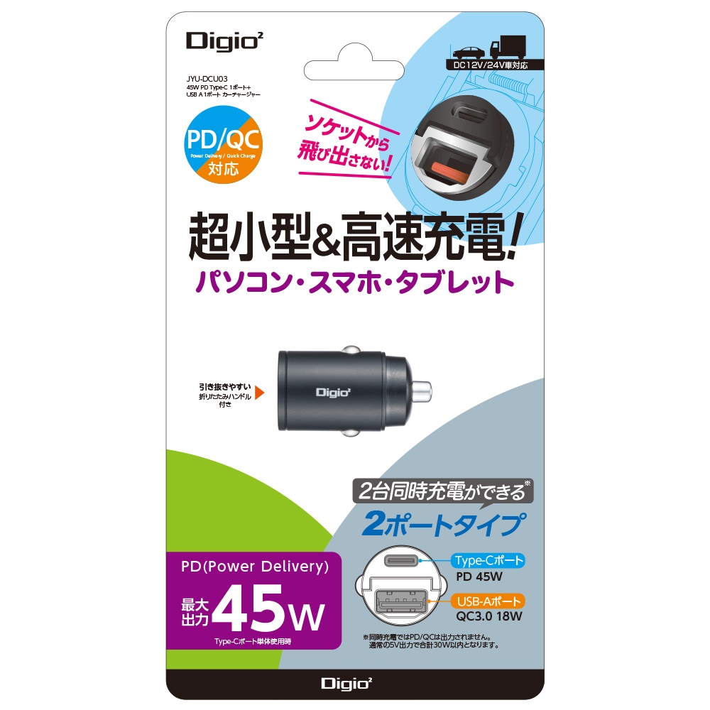 45W PD充電対応 Type-C1ポート+USB A1ポートカーチャージャー/ブラック