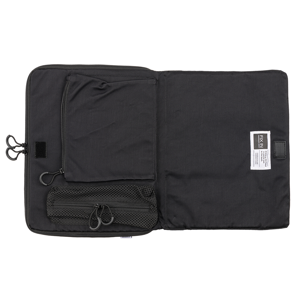 収納充実のオーガナイザーポケットが付いたPCバッグ、クラッチタイプで持ちやすい。