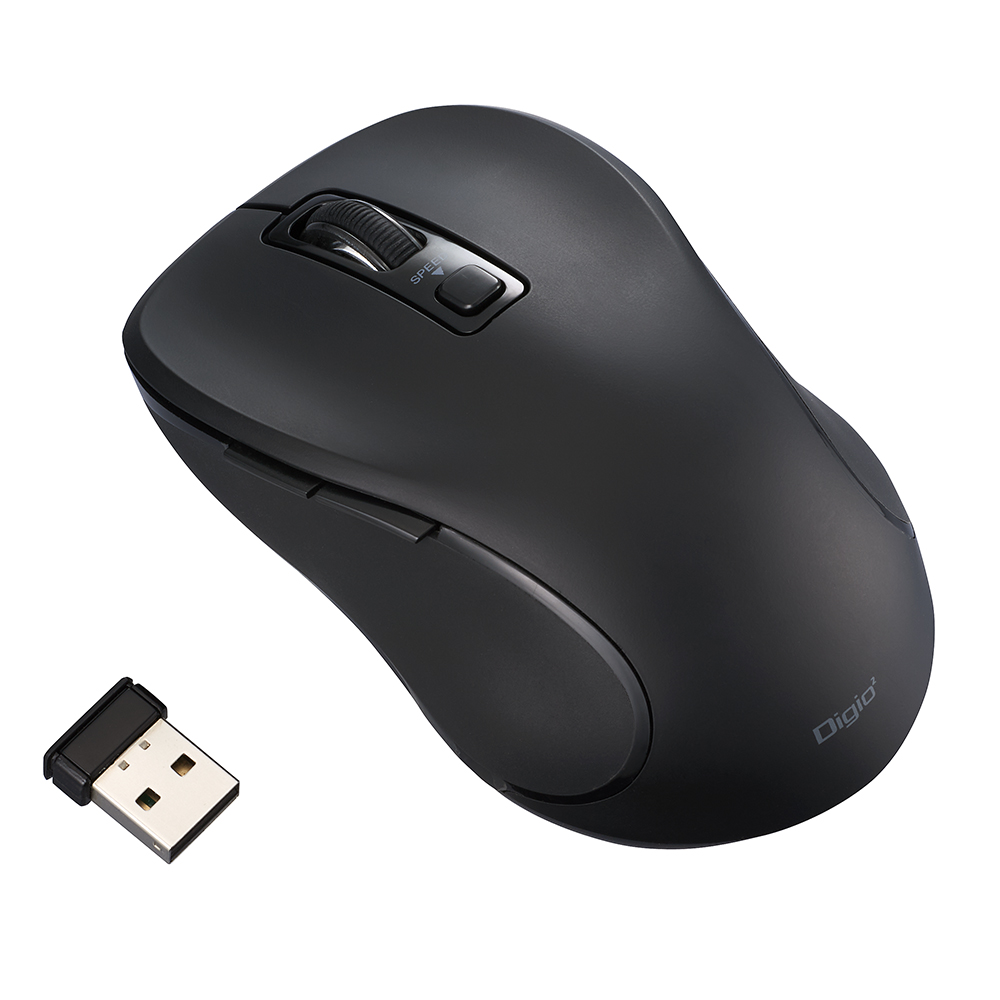 マウスポインタ―の速度を3段階(800dpi→1200dpi→1600dpi)で切り替えられる「SPEEDボタン」、Web閲覧に便利な「進む」「戻る」ボタンを搭載していますので、使用シーンに合わせた操作性を実現しています。