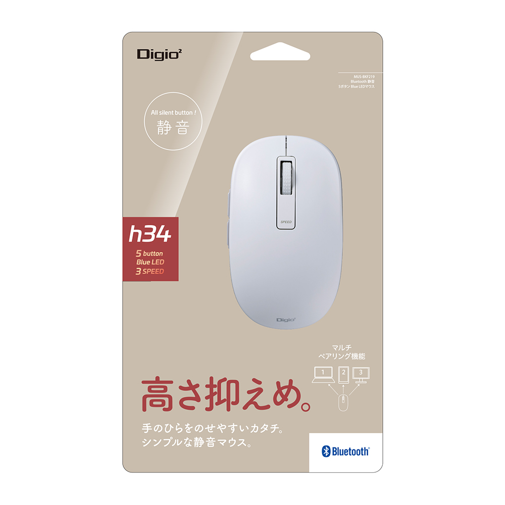 Bluetooth静音5ボタンBlueLEDマウス/ホワイト