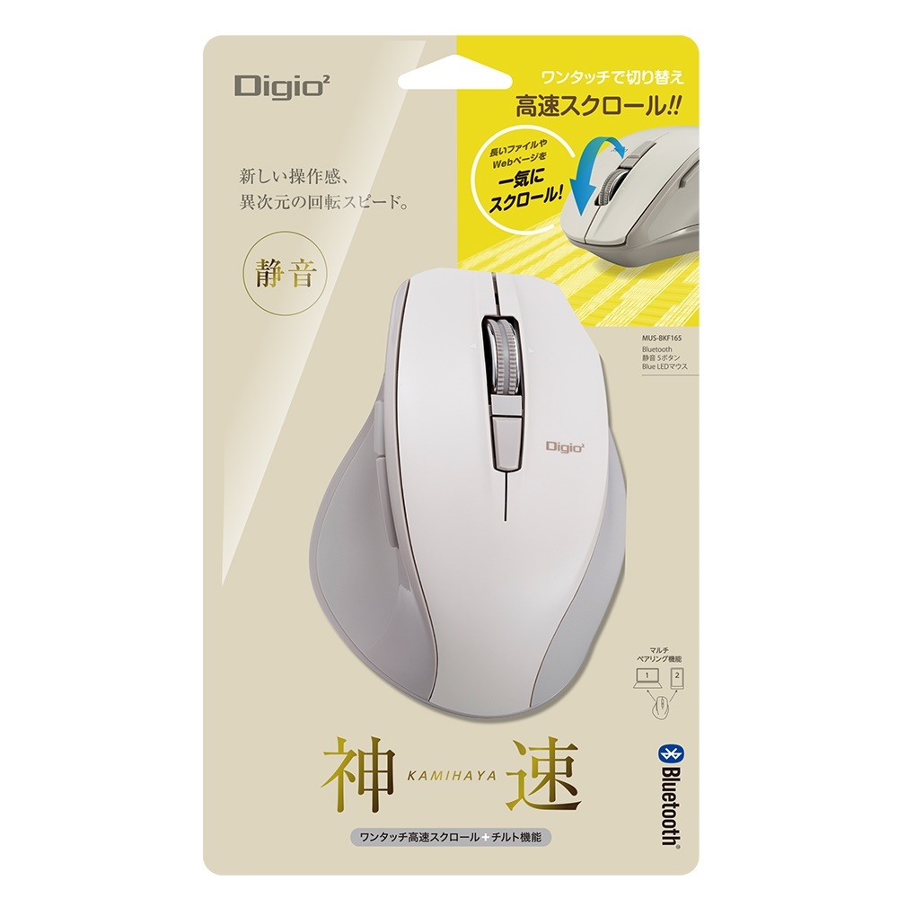 高速スクロールホイール搭載<神速>シリーズBluetooth静音5ボタンBlueLEDマウス/グレージュ