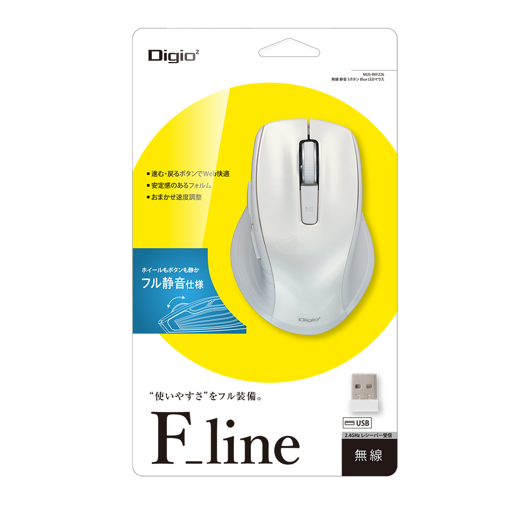 【F_line】無線静音5ボタンBlueLEDマウス/ホワイト