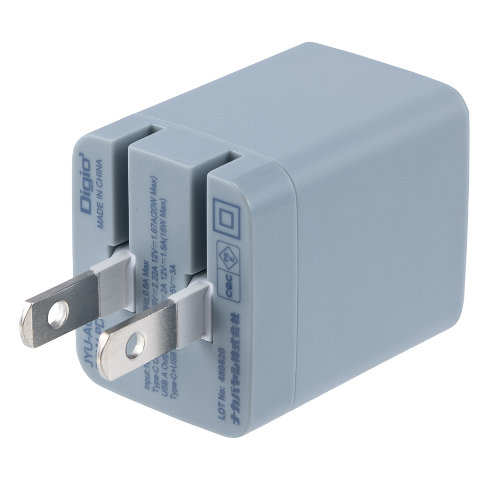| 出力(OUTPUT) | Type-C(PD)5V3A、 9V2.22A、 12V 1.67A (20W Max) USB A(QC)5V3A、 9V2A、 12V1.5A (18W Max) |