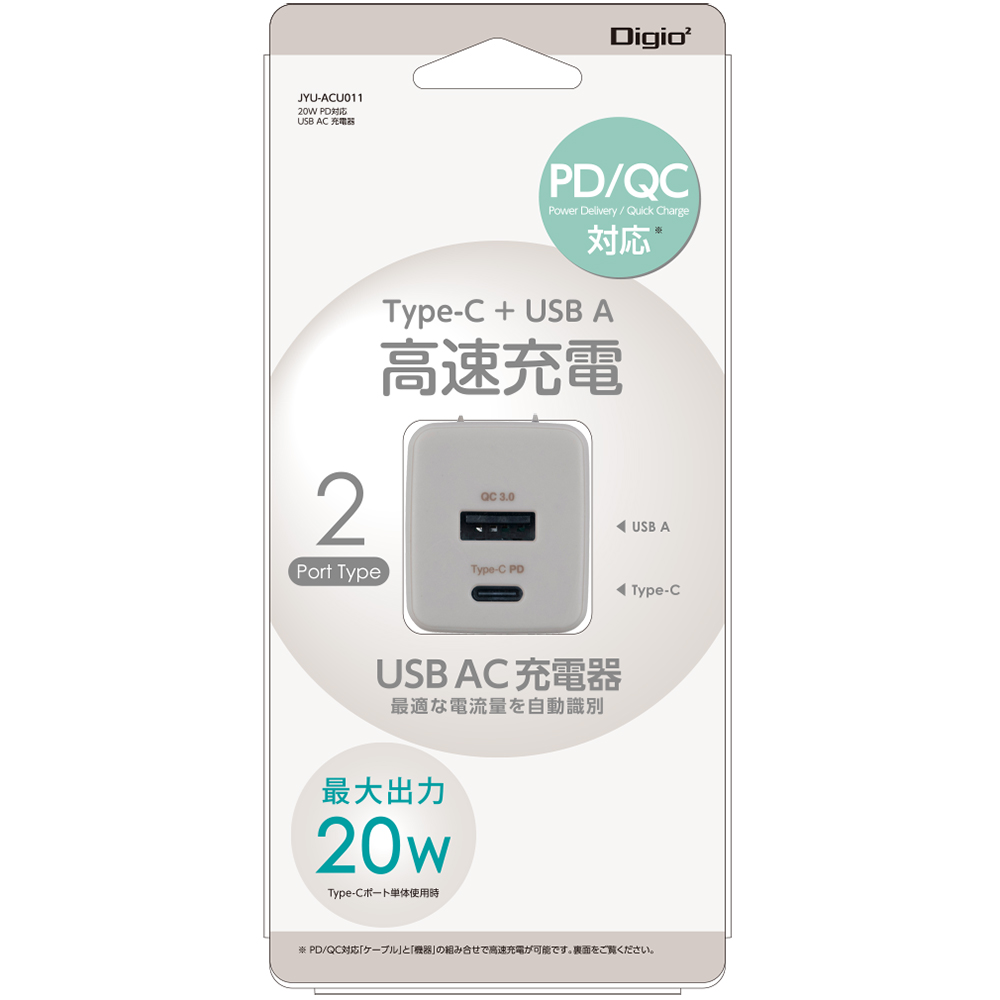 20W PD対応 USB AC充電器/グレージュ