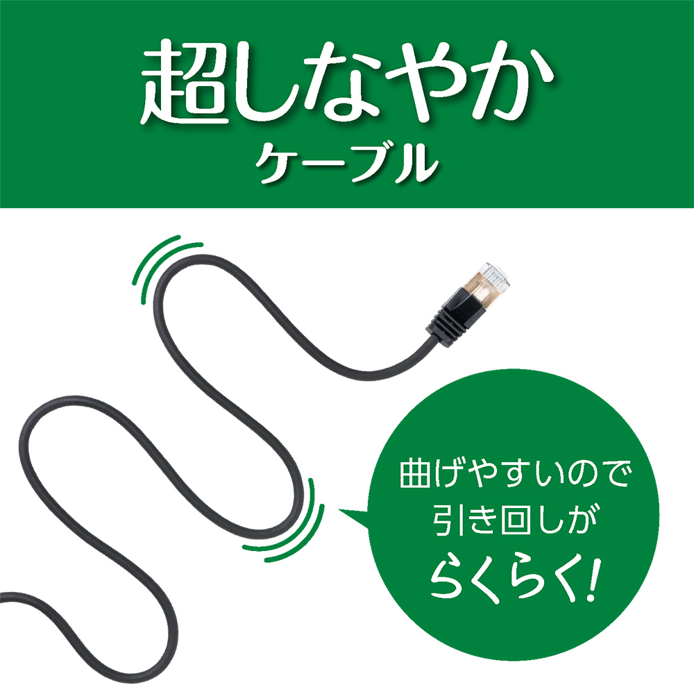 柔らかく絡みづらい「しなやかケーブル」採用
