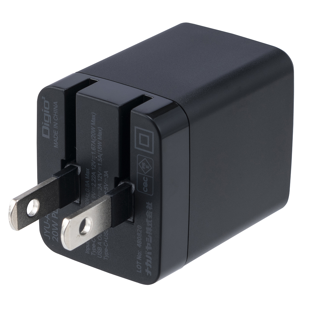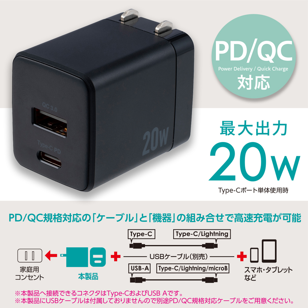 20W PD対応 USB AC充電器/ブラック