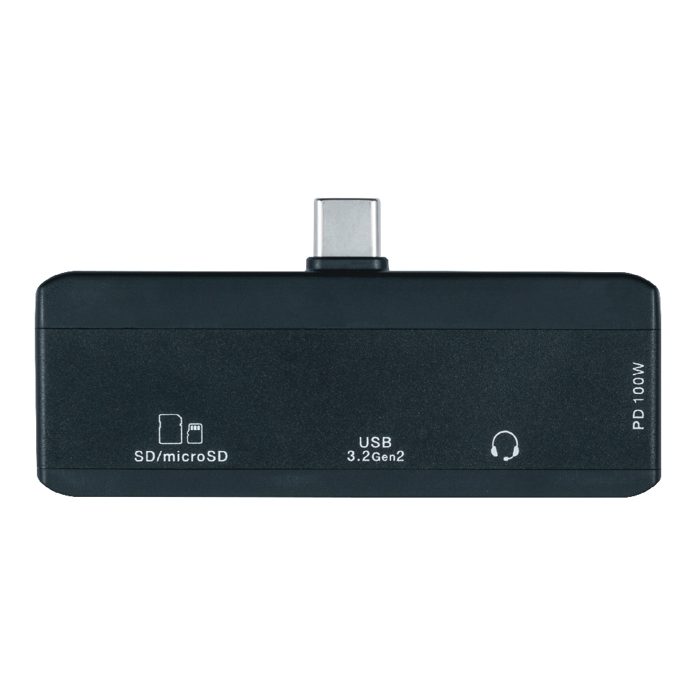 | インターフェース ダウンストリーム側(接続機器側) | USB Type-A 3.2Gen2メス×1、、USB Type-C 2.0メス(PD Max100) ×1 カードリーダーライター×1、3.5mmオーディオジャックメス×1 |