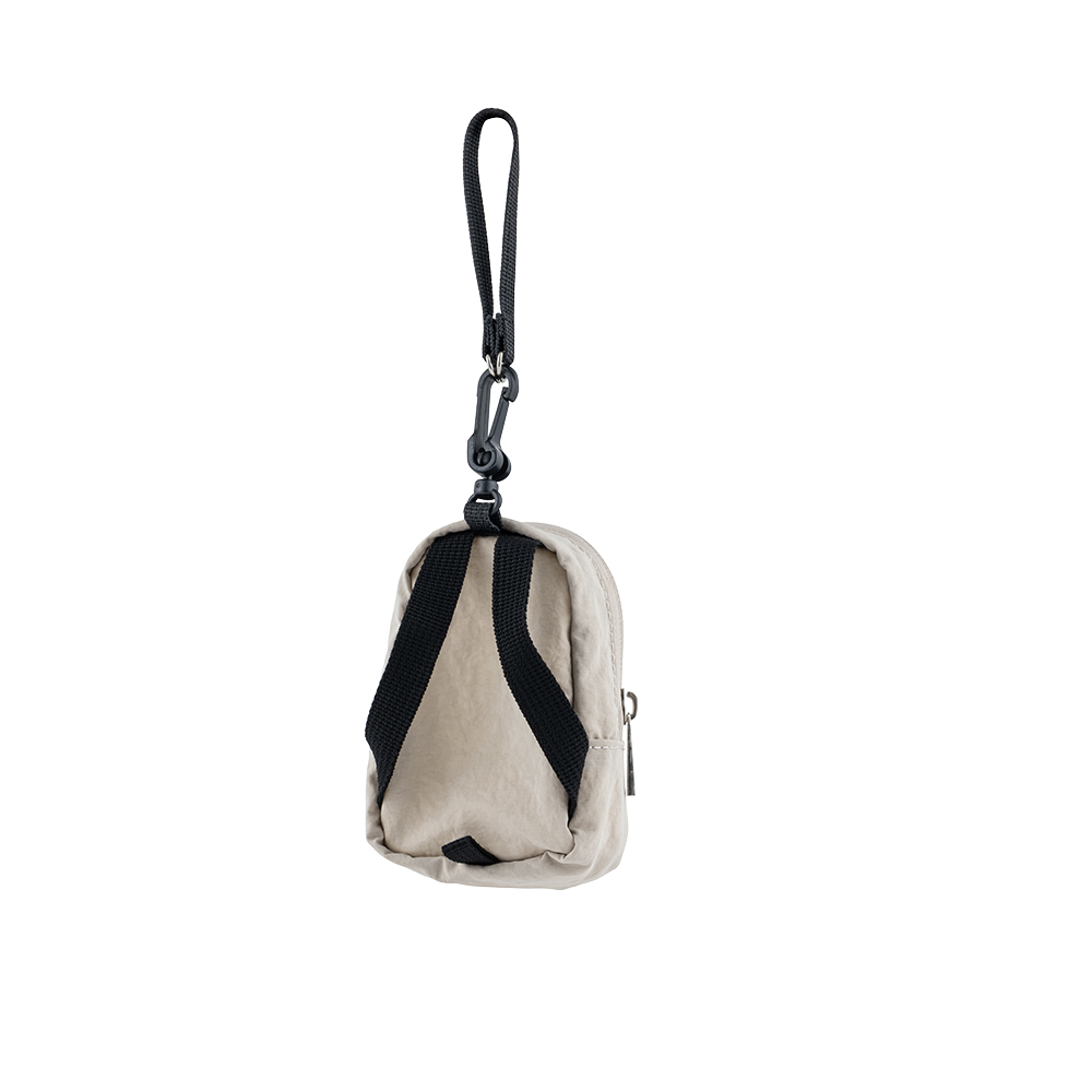 クシュっとした生地感でシンプルにデザインされており、日常使いのバッグにも馴染みやすく、お気に入りグッズをカジュアルに持ち歩けます。表面には撥水加工を施しており、軽い雨や水はねから中身を守ります。
