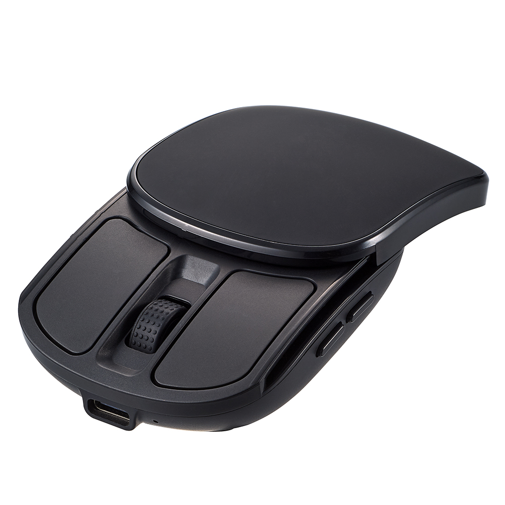 カバーを閉じればコンパクトに、開けば操作性アップ!移動が多い方にうれしいマウスです。
