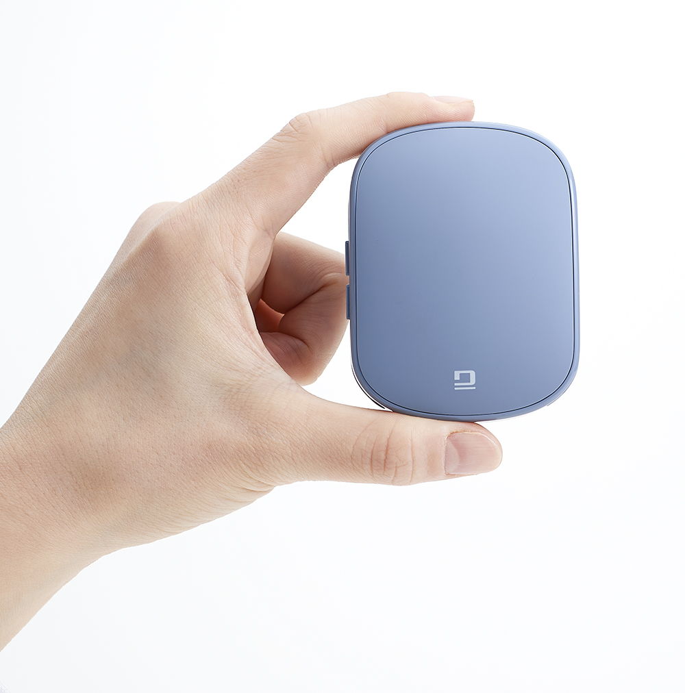 閉めるとポケットサイズに。ボタンをカバーする構造で持ち運び時の誤操作を防ぎます。