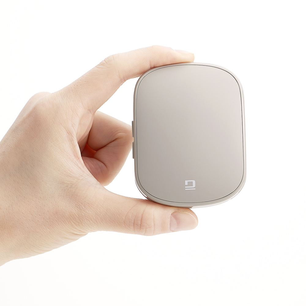 閉めるとポケットサイズに。ボタンをカバーする構造で持ち運び時の誤操作を防ぎます。
