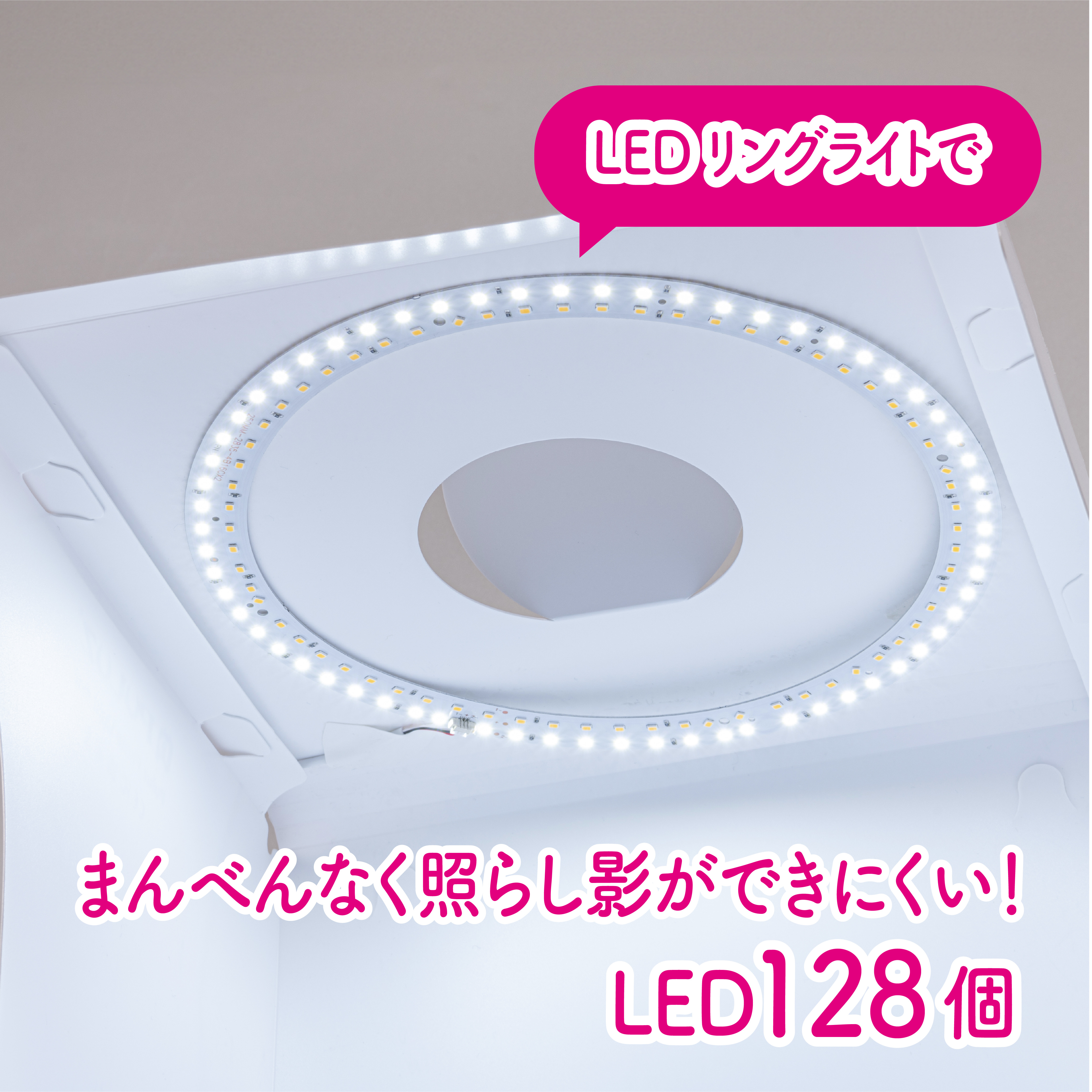 明るく撮影ができるUSB式LEDリングライト128灯を搭載していて、まんべんなく照らし影ができにくい!