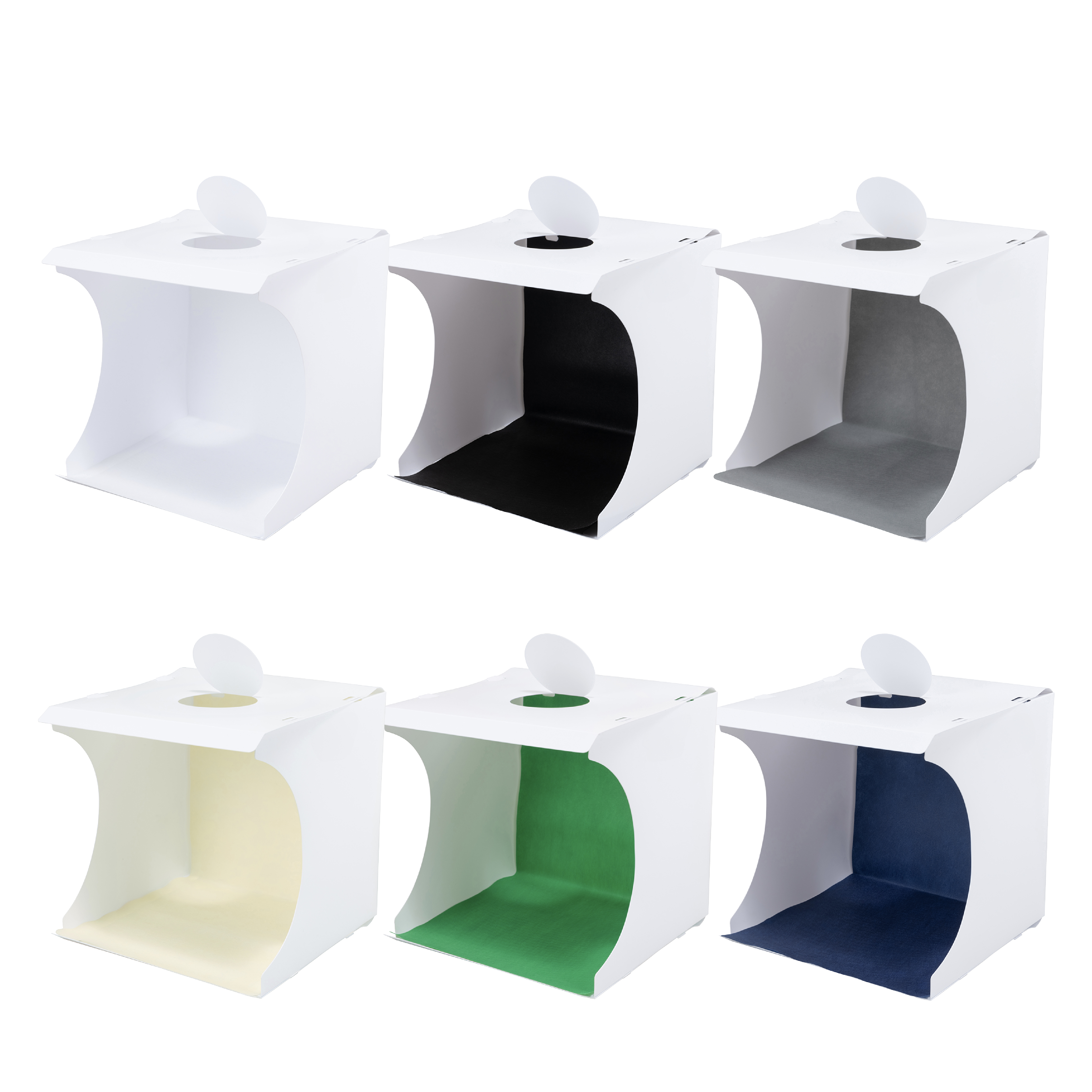 また、明るさも10段階で調整できるので、撮影シーンに合わせて細かく設定できます。用途や雰囲気に合わせて使い分けできる、6色の背景シート付き。グリーンやブルーの背景は、合成・編集作業にも最適です。