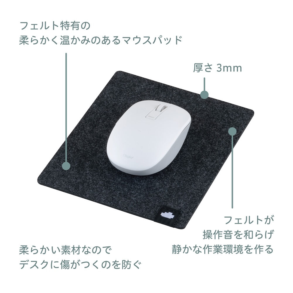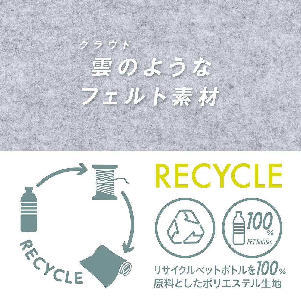 リサイクルペットボトル100%のフェルトで、やさしく環境に配慮。