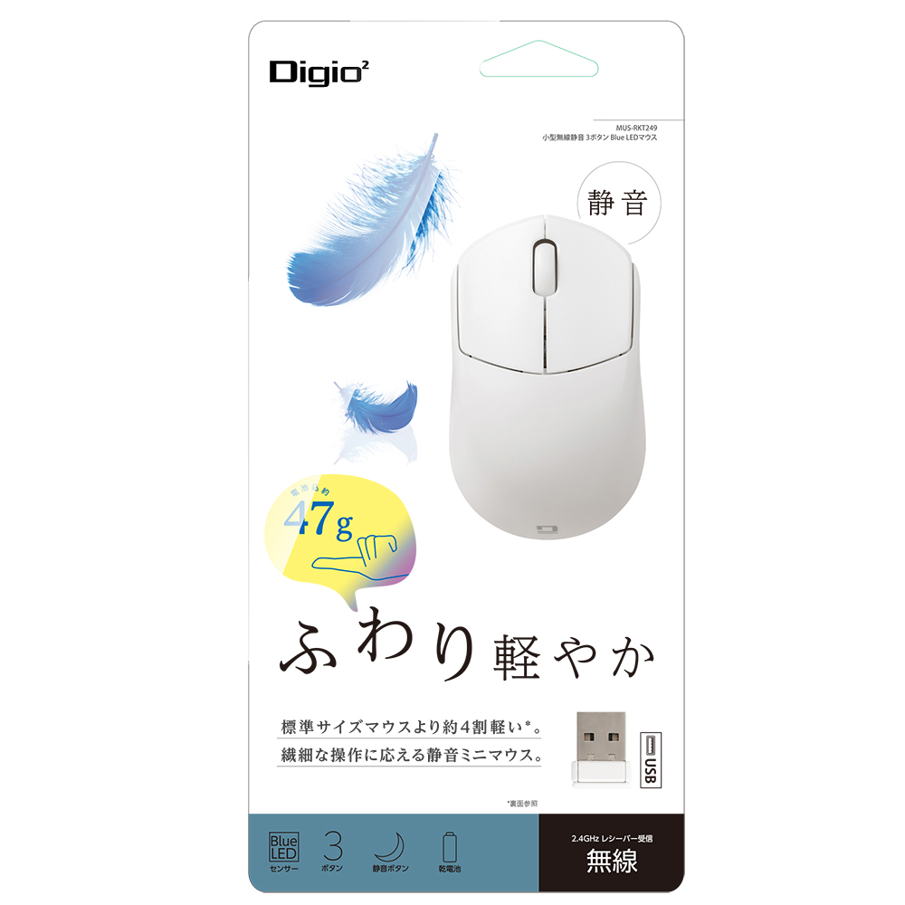 - ふわり軽やか、わずか47gの小型軽量無線マウス