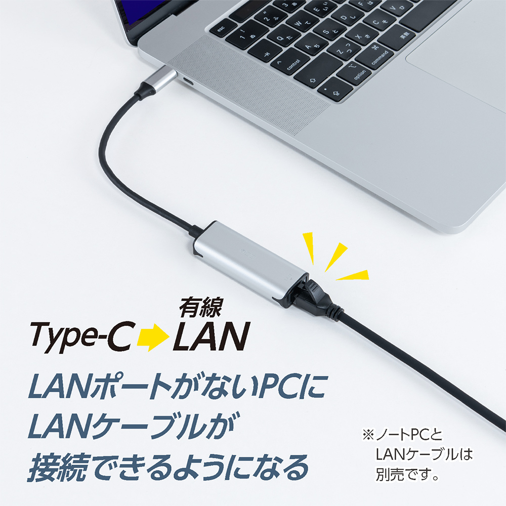 LANポートがないPCでもLANケーブルを接続できるようになります