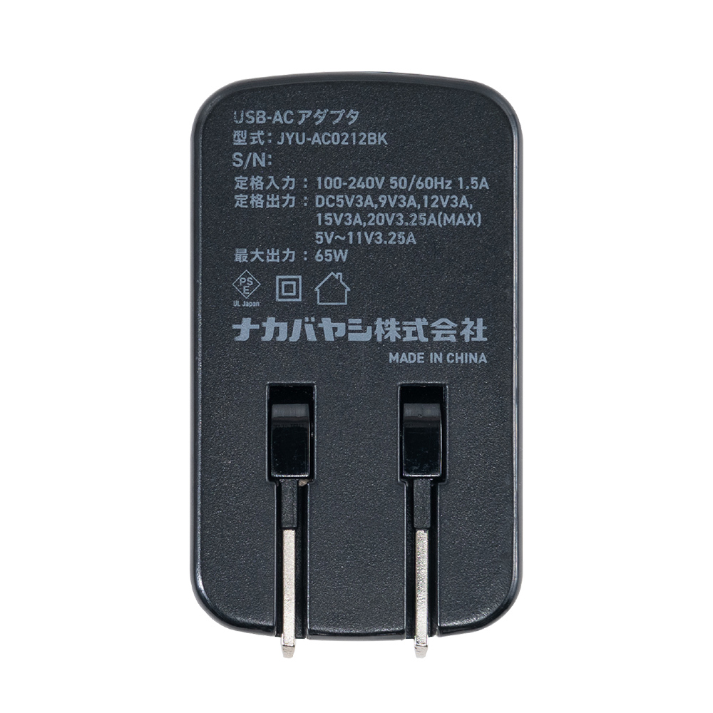 | 出力(OUTPUT) | 5V3A、 9V3A、12V3A、15V3A、 20V3.25A、 5~11V3.25A (65W Max) |