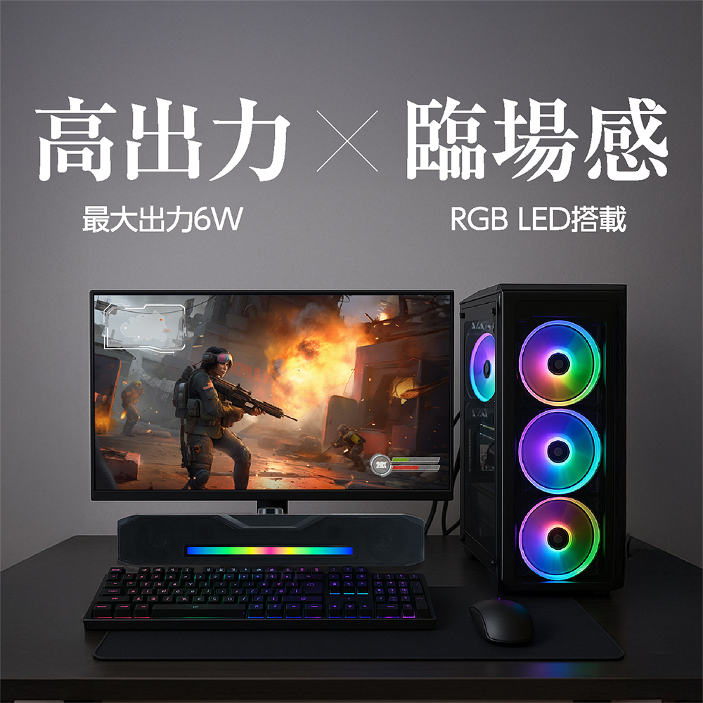 モニター下にフィットするUSBサウンドバー