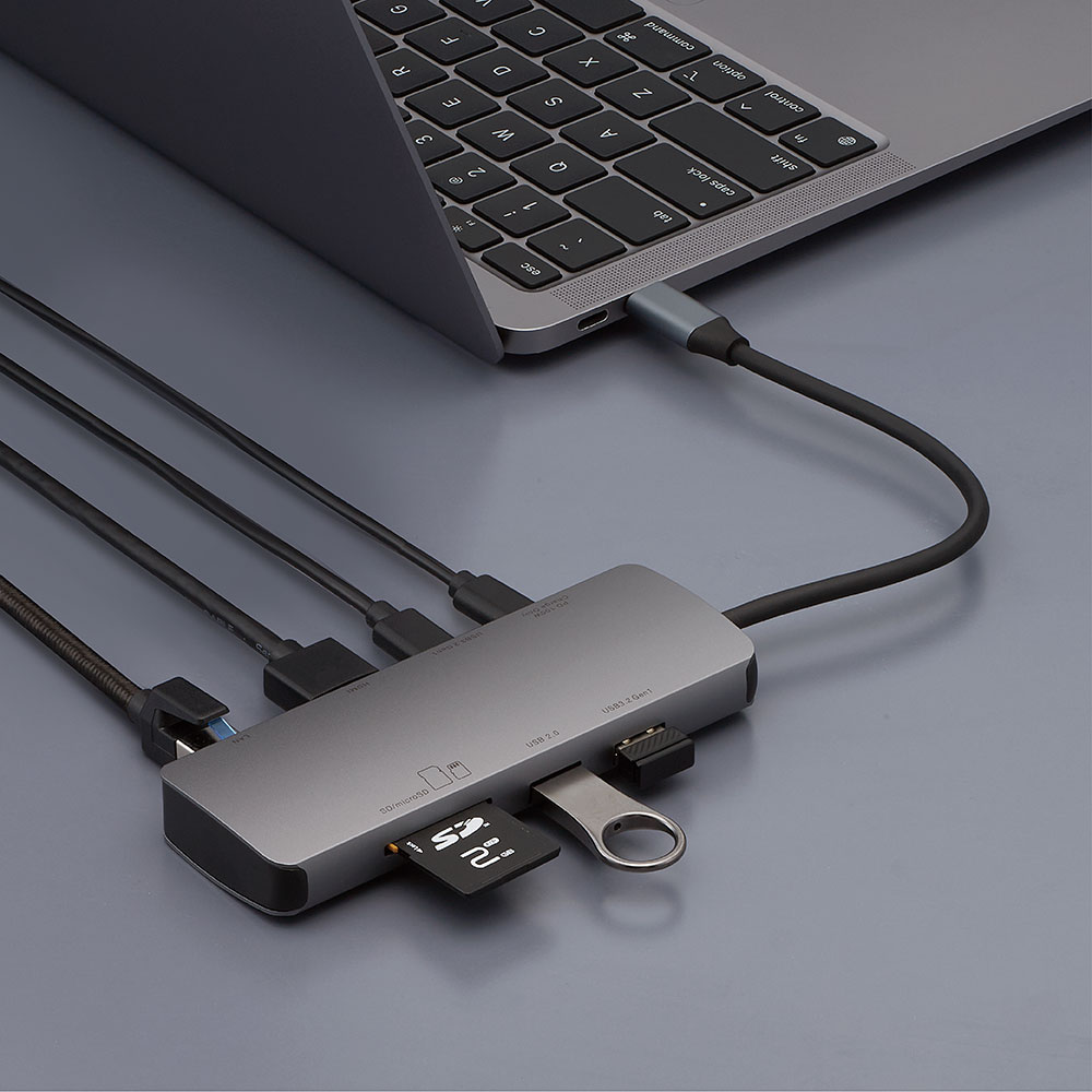 PD対応 Type-C 8in1マルチコネクトドッキングステーション/グレー