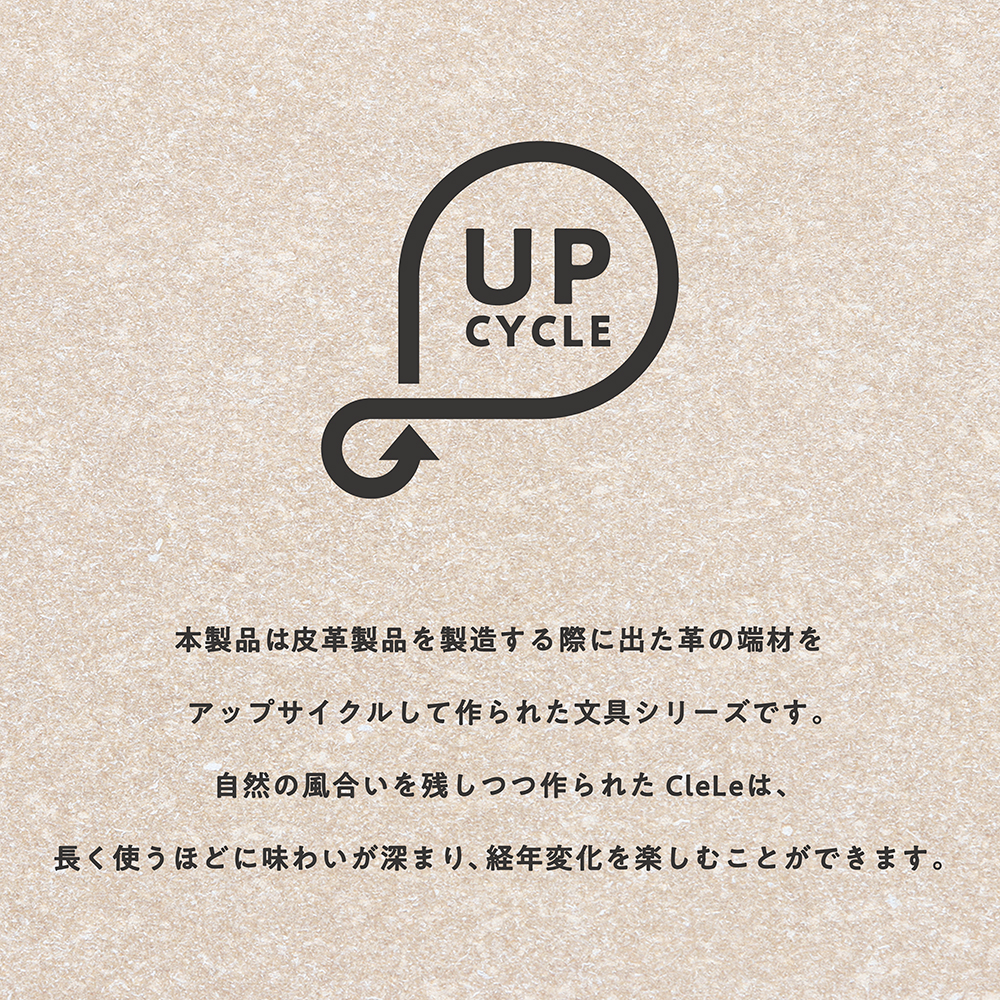 「CleLe(クルレ)」は、革製品を製造する際に出た革の余りや破片などをアップサイクルした皮革繊維再生複合材でつくられた環境にやさしい文具シリーズです。