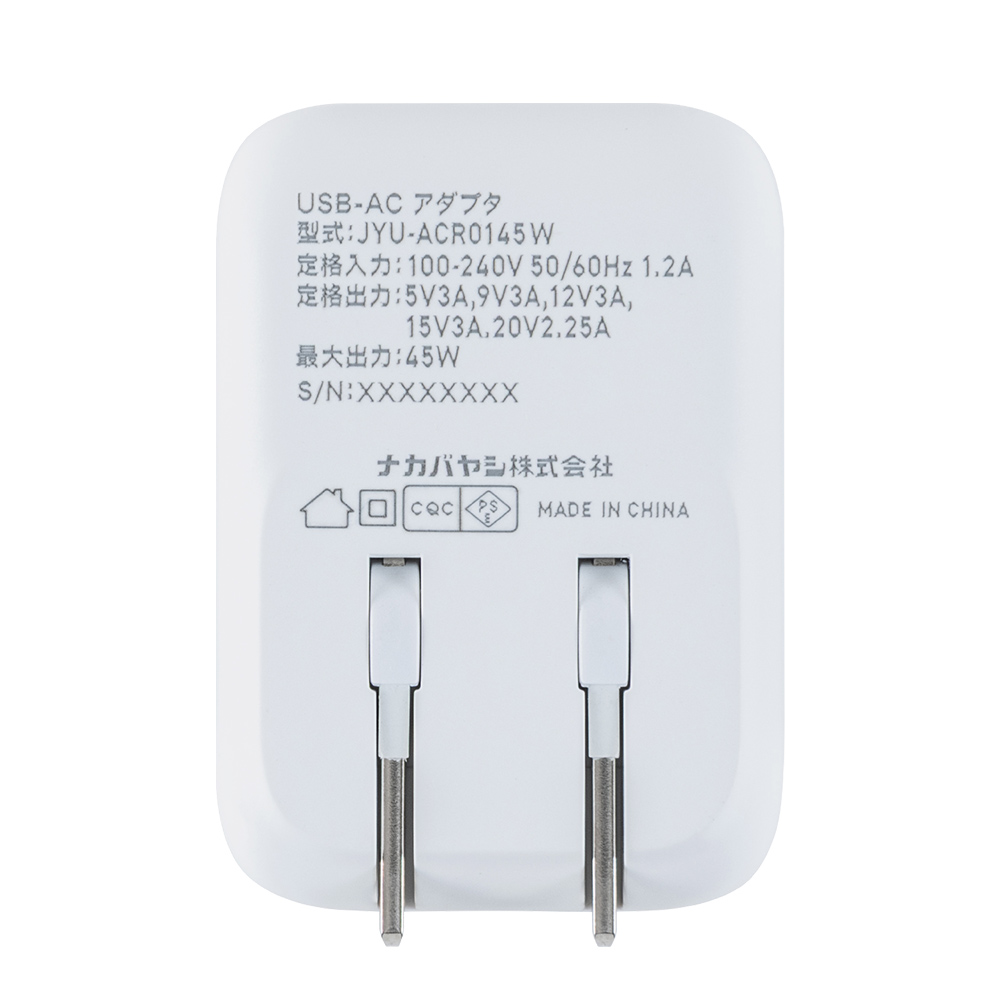 | 出力(OUTPUT) | Type-Cケーブル 5V3A、 9V3A、 12V3A、15V3A、20V2.25A (45W Max) |