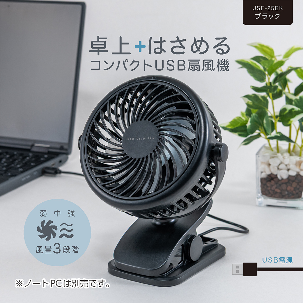 卓上+はさめるコンパクトUSB扇風機
