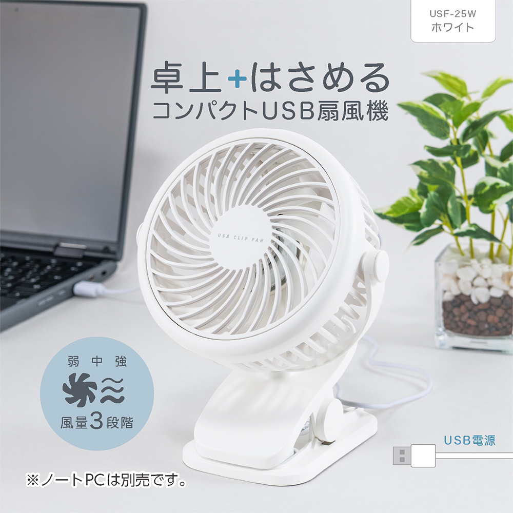 卓上+はさめるコンパクトUSB扇風機