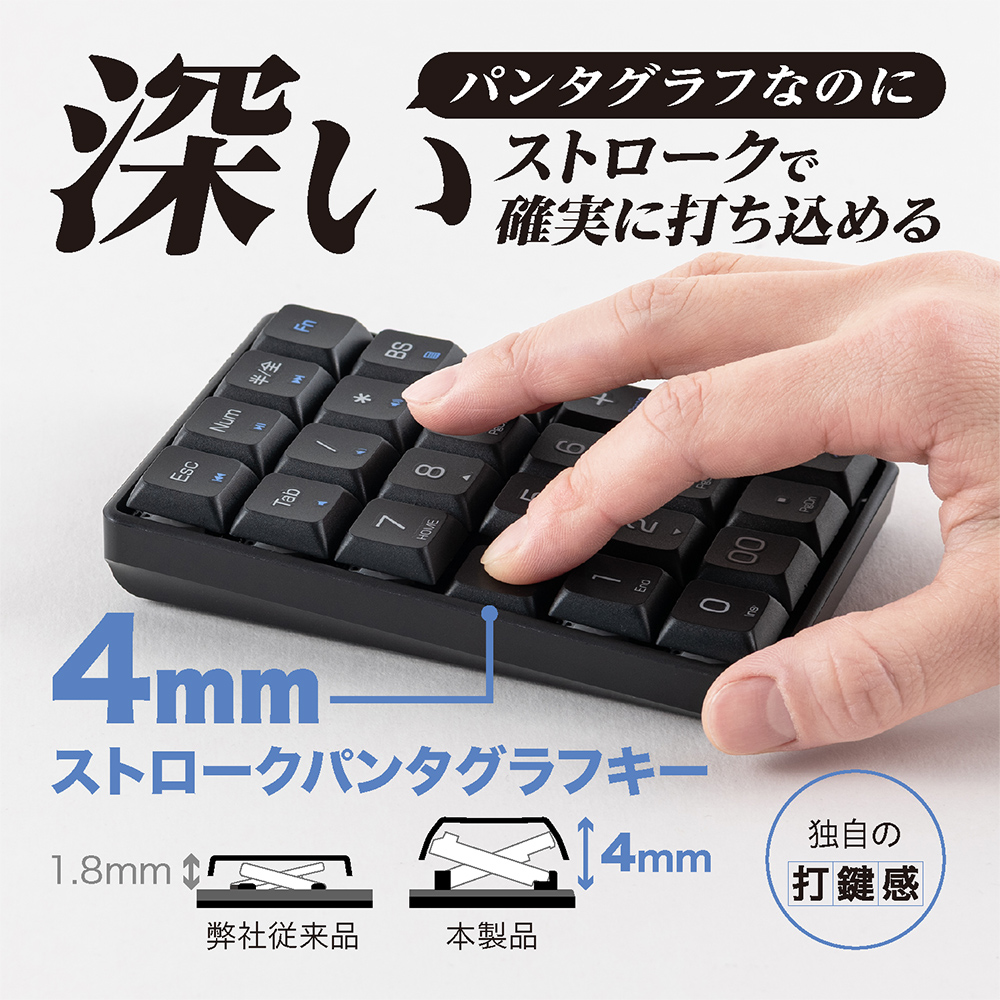 弊社従来品より深いキーストローク4mmのパンタグラフ採用