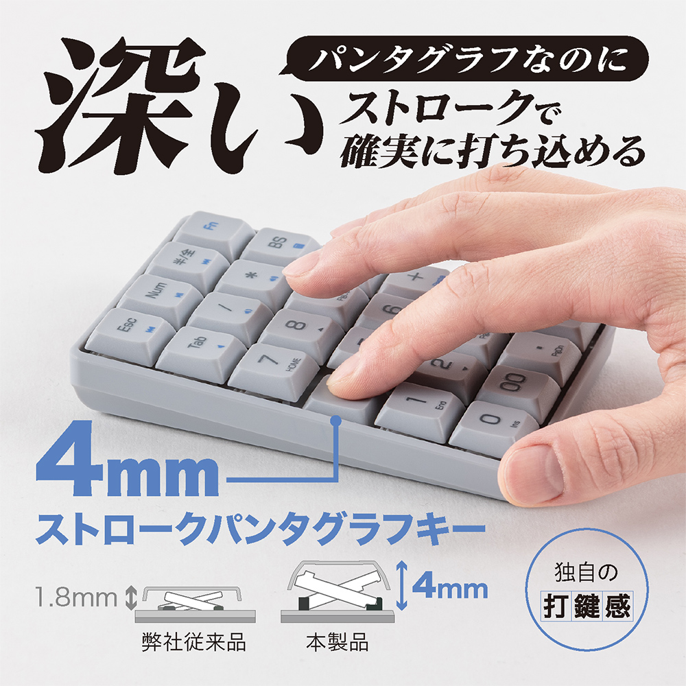 弊社従来品より深いキーストローク4mmのパンタグラフ採用