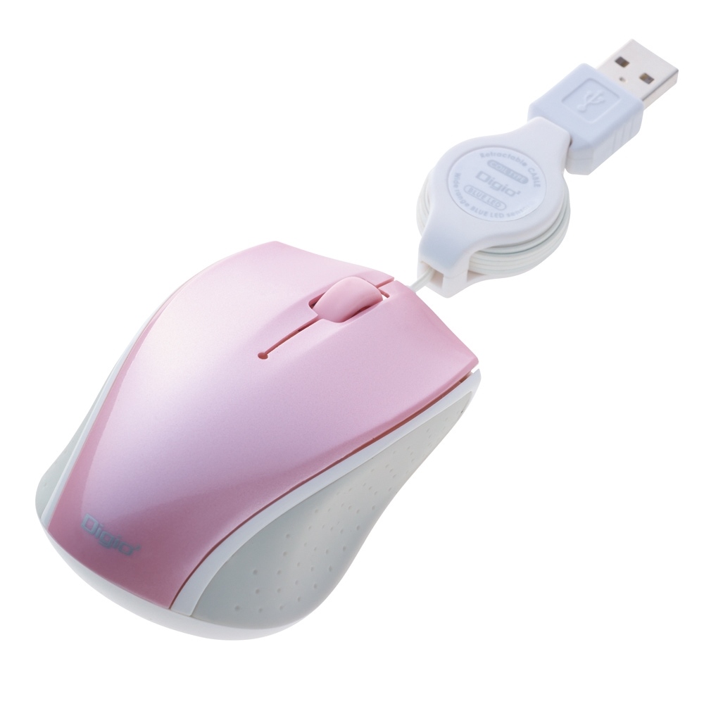 巻取有線3ボタンBlueLEDマウス ホワイト