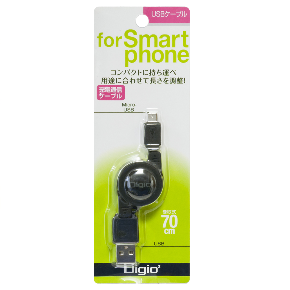 スマートフォンにデータ転送・充電のできる巻き取り式microUSBケーブル。